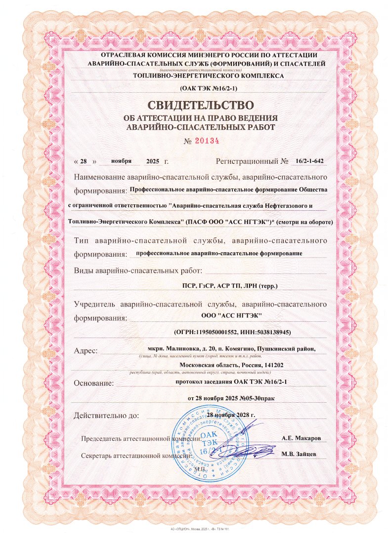Работы по ликвидации разливов нефти, Газоспасательные работы, поисково-спасательные работы, аварийно-спасательные работы, связанные с тушением пожаров