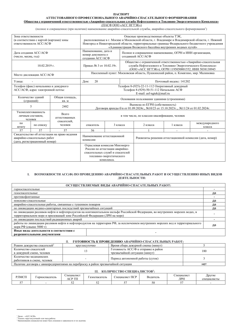 Паспорт оснащения ПАСФ "АСС НГТЭК"